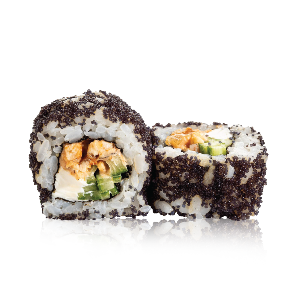 Ingredientai: Keptas ungurys, stintenių ikrai, agurkai, sūrio kremas