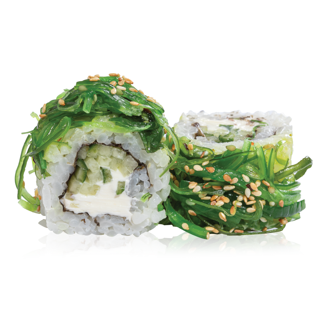 Ingredientai: Agurkai, jūros dumblių salotos, sezamai, sūrio kremas