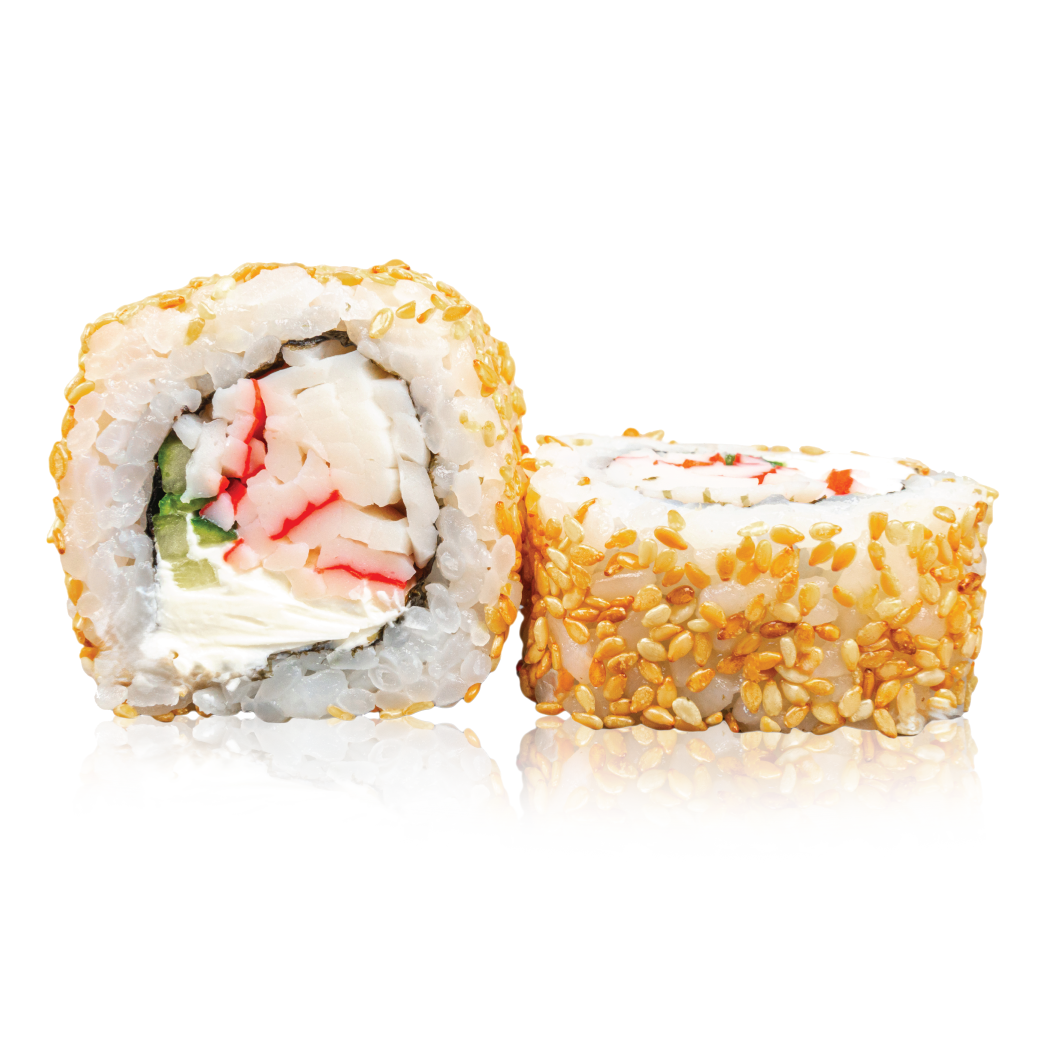 Ingredientai: Krabų lazdelės, agurkai, sezamai, sūrio kremas