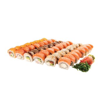 Keptos tigrinės krevetės, lašiša, stintenių ikrai, avokadas, mangų padažas