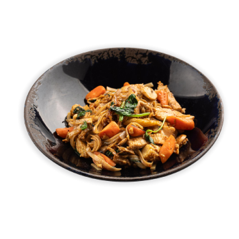 4. WOK SU VIŠTIENA, špinatais ir ryžių makaronais