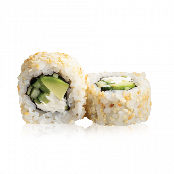 Ingredientai: Aitrus padažas, karai padažas, keptos tigrinės krevetės, laiškinis česnakas, stintenių ikrai, avokadas, sezamai, sūrio kremas