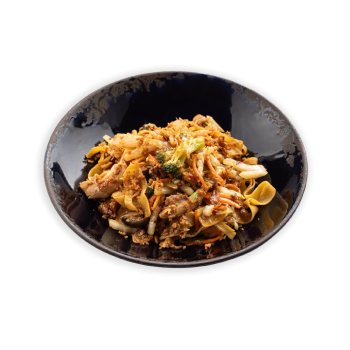 7. WOK SU KIAULIENA, saldžiarūgščiu padažu ir kvietiniais makaronais