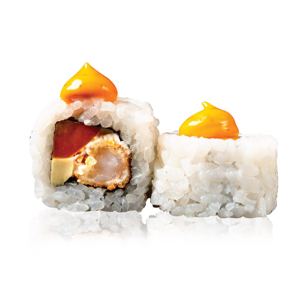 Keptos tigrinės krevetės, Avokadas, Morkos, Sūrio kremas, Mangų padažas