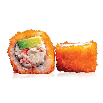 Krabų lazdelės, stintenių ikrai, avokadas, sūrio kremas