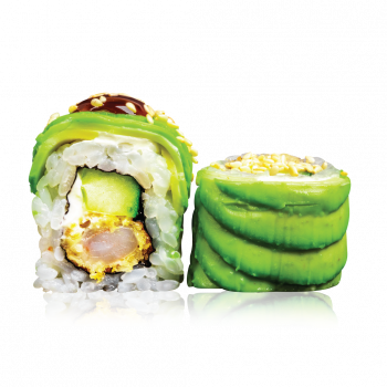 Keptos tigrinės krevetės, avokadas, agurkai, sezamai, sūrio kremas, terijakis
