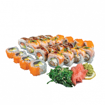 Mangai, tunas, stintenių ikrai, avokadas, sūrio kremas