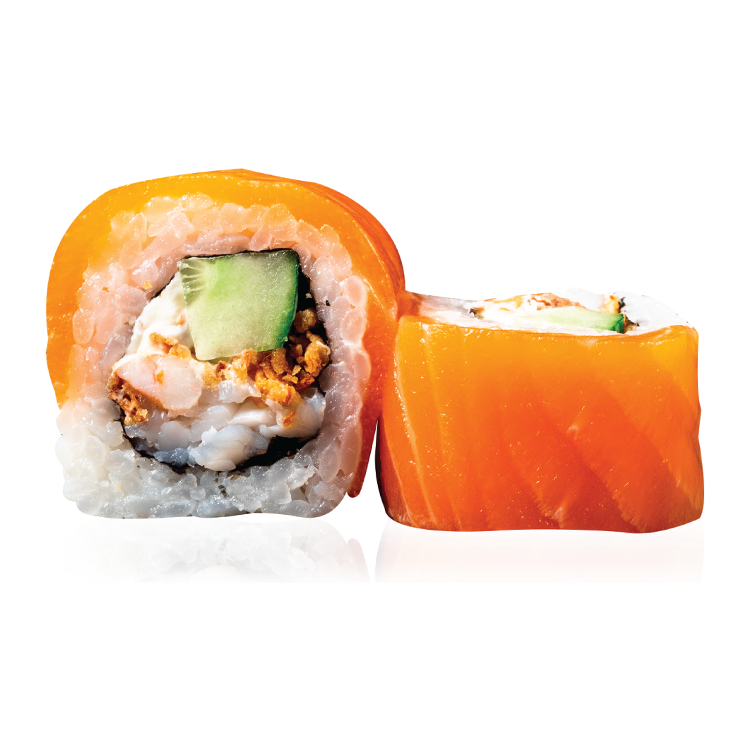 Lašiša, Virtos tigrinės krevetės, Agurkai, Svogūnų traškučiai, Sūrio kremas